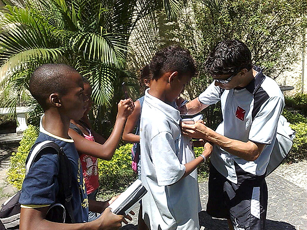 NETVASCO - 27/03/2009 - SEX - 16:42 - Pequenos torcedores vascaínos fazem fila para pegar autógrafo de PimpãoNão é só o técnico Dorival Júnior que enxerga um futuro promissor para Rodrigo Pimpão. Após o treino desta sexta-feira, em São Januário, o atacante foi cercado por um grupo de crianças e, por quase meia hora, tirou fotos e distribuiu autógrafos. Ao contrário dos demais titulares, o paranaense teve dificuldades para chegar ao refeitório. Nada que o impedisse de continuar sorrindo com a boa fase no Vasco.