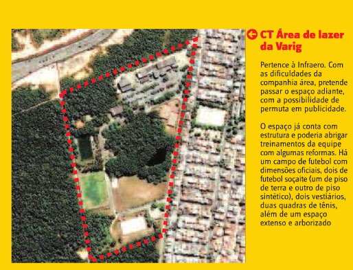 Na última semana, o vice-presidente geral Luso Soares da Costa visitou a Área de Lazer da Varig, na Ilha do Governador, que já conta com uma estrutura como campo oficial e vestiários. O espaço percente à Infraero, que tem a ideia de repassar o local, já que a empresa áerea enfrenta uma crise financeira. Para isso, bastam conversas e a possibilidade de permuta com o clube. Caso o Vasco tenha mesmo de deixar o CT da Barra, o espaço, por já contar com uma boa estrutura, seria uma solução imediata. Luso Soares não confirmou que o local seja a Área de Lazer da Varig, mas afirmou: