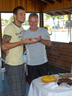 NETVASCO - 27/04/2009 - SEG - 01:58 - Dorival Júnior deu primeiro pedaço do bolo ao zagueiro FernandoEm respeito ao comandante, os jogadores trocaram a tradicional ovada de aniversário por bolos e tortas após o treino no Vasco Barra. Feliz, Dorival entregou o primeiro pedaço ao xerifão Fernando, representando todos os jogadores.