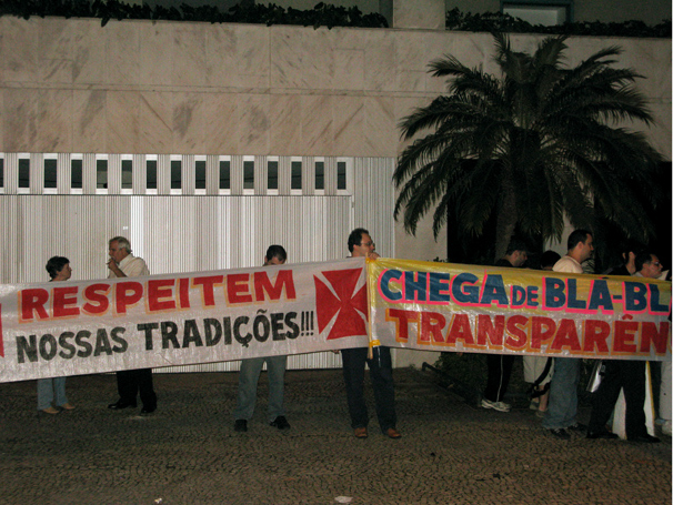 Um grupo de torcedores do grupo da oposição também esteve na porta da sede do grupo para protestar contra a atual administração. Cerca de 25 pessoas trouxeram duas faixas e cantaram músicas contra integrantes da atual diretoria.