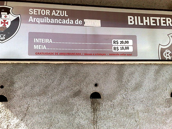 NETVASCO - 08/05/2009 - SEX - 16:09 - Algumas blheterias de SJ ainda divulgam preço antigo do ingressoA diretoria do Vasco aumentou em 50% o valor da arquibancada para a disputa da Série B. Se no Campeonato Carioca era cobrado R$ 20 pelo ingresso, para a estreia da Série B contra o Brasiliense o preço passou para R$ 30. Mas as bilheterias que existem em volta do estádio ainda informam o valor antigo. Apenas a bilheteria aberta para a venda antecipada traz uma folha de papel colada no muro com o valor atual.