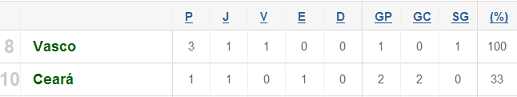 Último Jogo: 14/05/1993 - Copa do Brasil - VAS 2x0 CEA