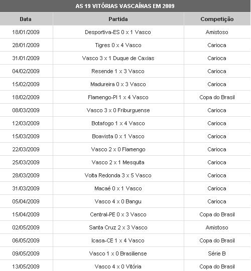 NETVASCO - 15/05/2009 - SEX - 11:24 - Vasco tem aproveitamento de 83% em 2009, mas Dorival Jr. não se iludeNos frios números, o Vasco tem um ano de entusiasmar até o mais pessimista torcedor. Dos 24 jogos disputados nesta temporada, o time venceu 19. O aproveitamento é de 83,3% dos pontos disputados.