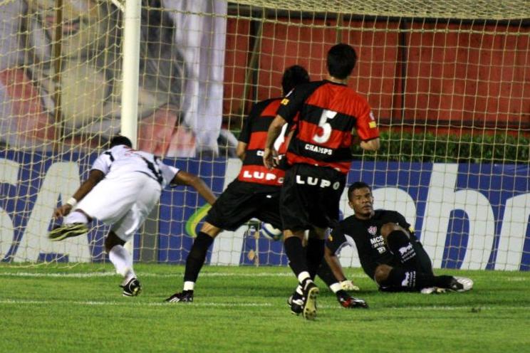 Assim, o Vasco cresceu na partida. Ramon furou a marcação pela esquerda, invadiu a área e chutou forte. Viáfara fez grande defesa, aos 26 minutos. Pimpão também quase marcou, aos 30, mas chutou fraco, nas mãos do goleiro rubro-negro.