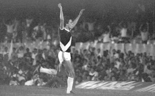 Dinamite comemora um de seus 5 gols no Vasco 5 x 2 Corinthians de 1980
