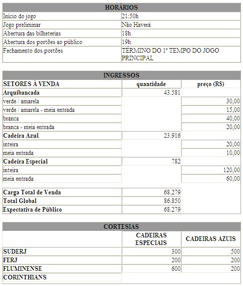 Confira no site da Suderj (orgão que administra o Maracanã) clicando . As informações encontram-se reproduzidas abaixo: