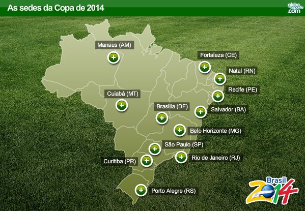 Segundo Blatter, a intenção da Fifa era ter apenas dez cidades como sedes. Porém, a pedido do presidente da CBF, Ricardo Teixeira, o número subiu para 12. As escolhidas foram: Belo Horizonte, Brasília, Cuiabá, Curitiba, Fortaleza, Manaus, Natal, Porto Alegre, Recife, Rio de janeiro, Salvador e São Paulo.