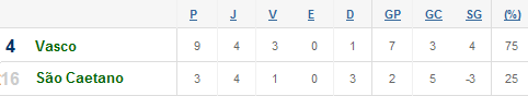 Rio de Janeiro: 6 3 0 3 10 1,67 9 1,50 +1