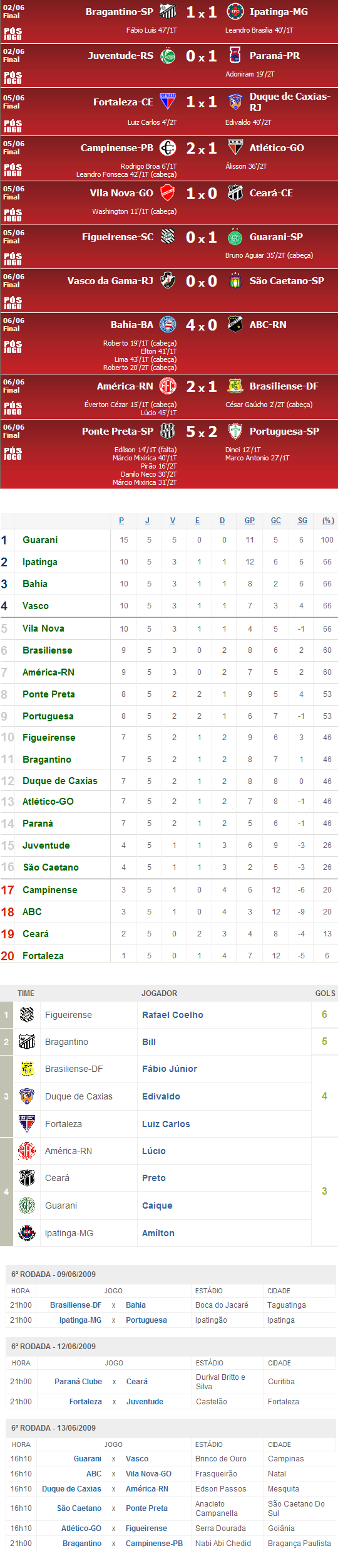 Fonte: Futebol Interior (resultados, gols), GloboEsporte.com (classificação), UOL (artilheiros, tabela) índice | envie por e-mail Anterior: 00:11 - Carlos Alberto: 'Lutamos e mesmo com um a menos tivemos chances' Próxima: 00:35 - Dorival Jr. fala sobre estreia de Aloísio e opções no elenco |