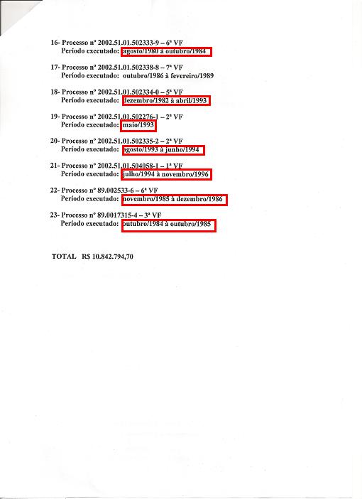 Começaremos pelos processos de execução quanto ao Fundo de Garantia por Tempo de Serviço. São apresentados abaixo os números dos processos de execução e o período aos quais correspondem.