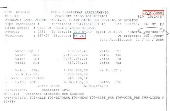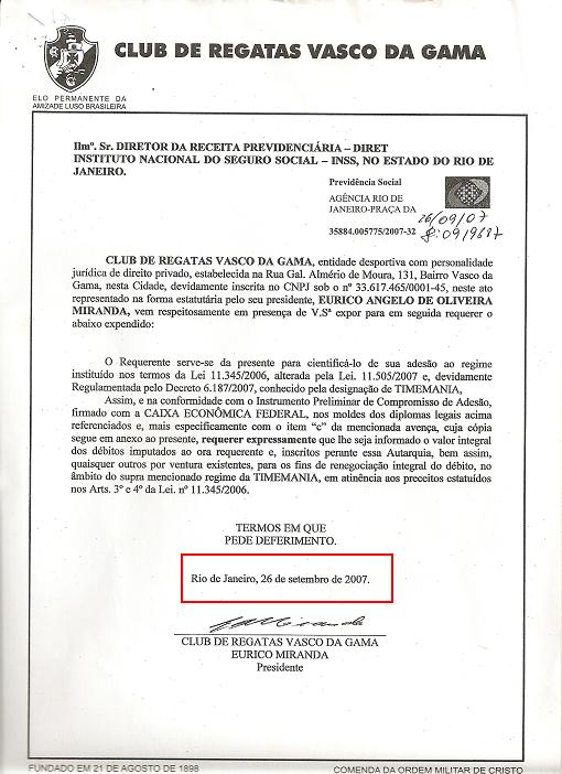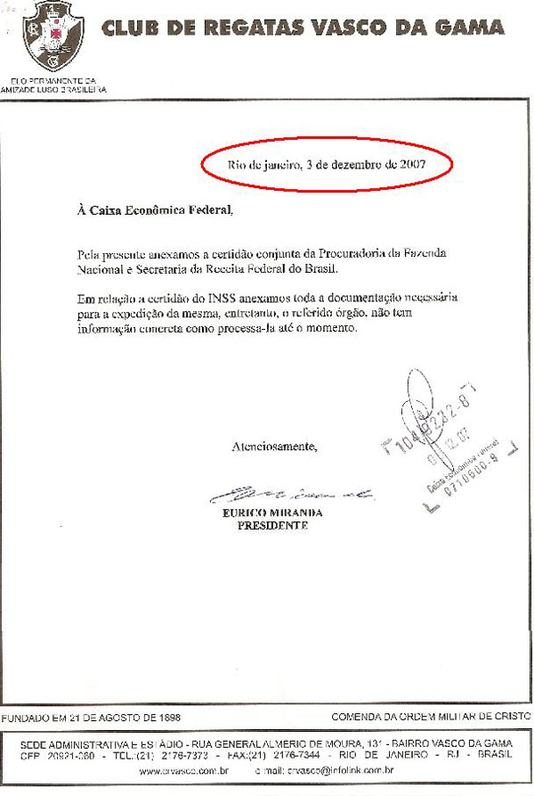 As matérias e documentos abaixo foram publicados neste site em fevereiro de 2009 e comprovam a situação de regularidade fiscal na qual o Vasco se encontrava antes do golpe: