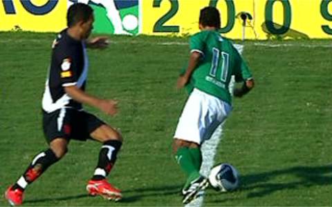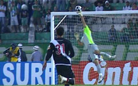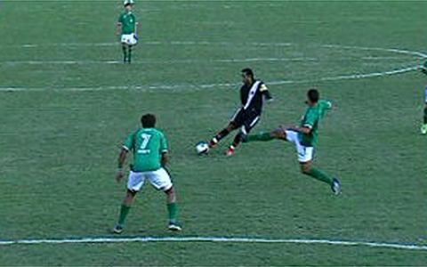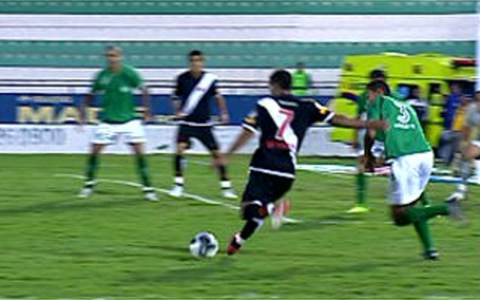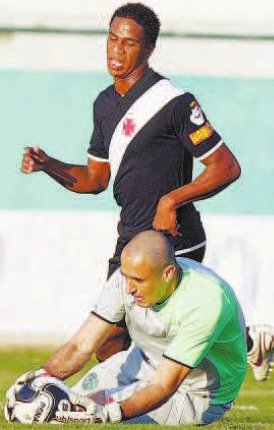 Depois de servir o companheiro e ver que a conclusão foi ruim, o meia tentou em arremate de fora de área. Só que o chute saiu fraco pela linha de fundo. Foi de longa distância, aliás, o lance de maior perigo da etapa inicial. E em favor do Vasco. O volante Nilton cobrou falta forte, a bola bateu no gramado e Douglas espalmou.