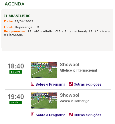A cidade de Ituporanga recebe nesta terça-feira pela segunda vez em menos de um mês o Showbol. Na primeira partida se enfrentão Atlético-MG x Internacional, ás 18h40. Na sequencia tem o clássico entre Vasco e Flamengo.