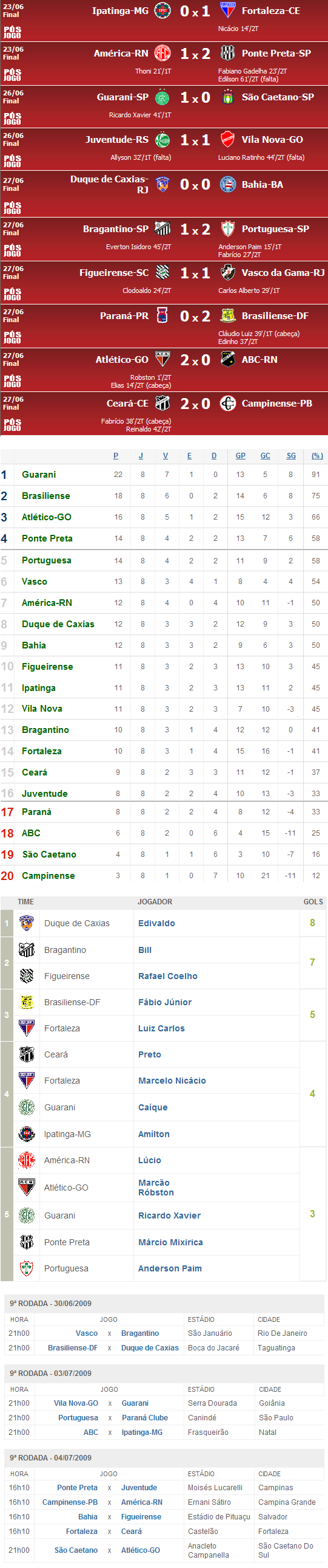Fonte: NETVASCO (texto), Futebo Interior (resultados), GloboEsporte.com (classificação), UOL (artilharia, próximos jogos) índice | envie por e-mail Anterior: 01:05 - Elenco se reapresenta neste domingo no Vasco Barra Próxima: 01:22 - Dorival Júnior deve ter Gian e Pimpão contra o Bragantino |