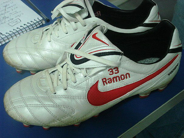 NETVASCO - 10/07/2009 - SEX - 00:54 - Ramon vai estrear chuteira personalizada no próximo sábadoNa última segunda-feira, o lateral-esquerdo Ramon não escondia de ninguém a alegria pela proximidade da chegada da encomenda que havia feito em um site europeu. Uma chuteira branca personalizada com o seu nome e o número 33, o mesmo que utiliza defendendo o time do Vasco. Na atividade desta quinta-feira, na sede do clube na Zona Oeste do Rio de Janeiro, ele ostentou o novo adereço.
