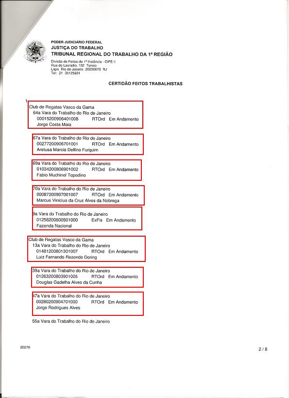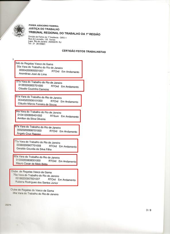 NETVASCO - 18/07/2009 - SÁB - 17:28 - Oposição publica lista de reclamações trabalhistas do VascoNota e documentos publicados pelo site do Casaca, maior grupo de oposição da política vascaína: