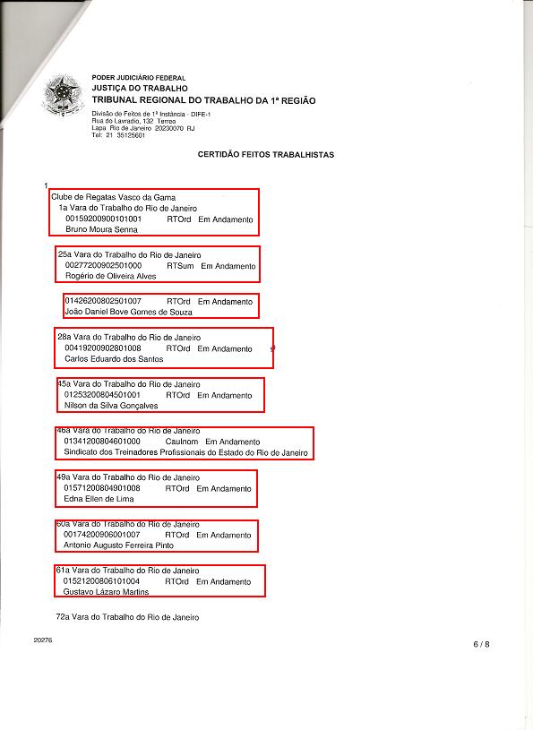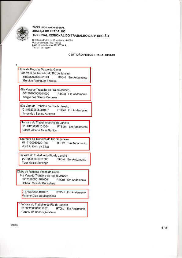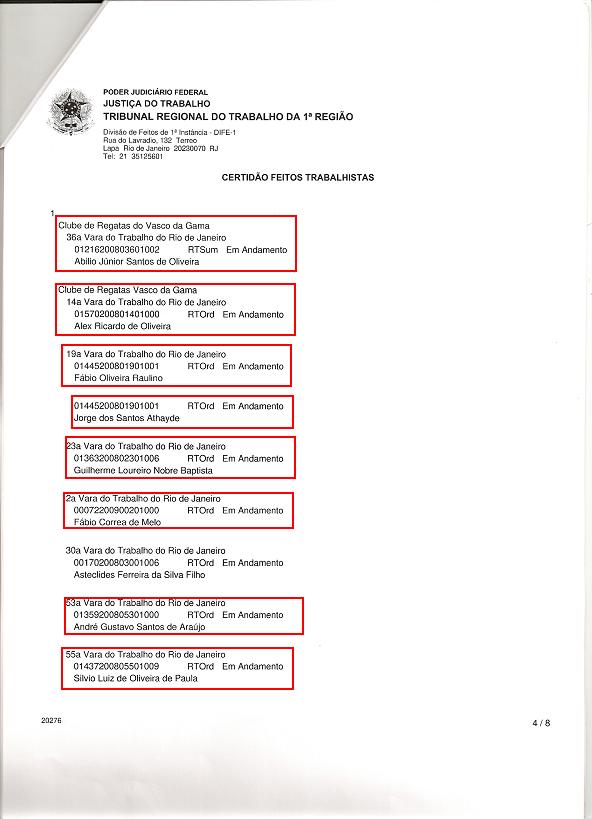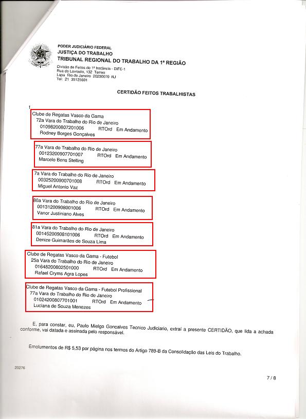 Observação 2: Das 48 RTs restantes, a grande maioria é de funcionários do Vasco demitidos sem justa causa por Roberto Dinamite. O número tende a aumentar, já que muitos nomes ainda não apareceram na listagem.