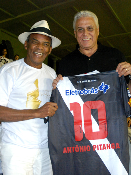NETVASCO - 19/07/2009 - DOM - 01:38 - Dinamite presenteia ator Antônio Pitanga com camisa personalizadaAntes da partida Vasco x ABC, pelo Brasileiro da Série B, na última sexta-feira (17/07), em São Januário, o presidente vascaíno Roberto Dinamite presenteou o ator Antônio Pitanga com uma camisa do Vasco personalizada.