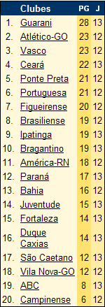 Fonte: NETVASCO (texto), Infobola (classificação) índice | envie por e-mail Anterior: 21:57 - Confira como foi a reunião da Cruzada Vascaína no dia 22/07 Próxima: 23:04 - Esgrima: Vasco participa com 4 atletas do Torneio Nacional no RJ |