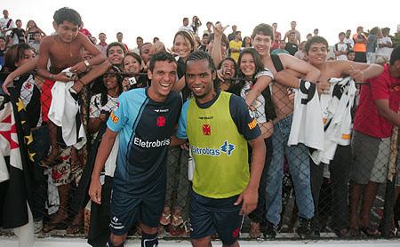 Torcida do Vasco faz a festa com jogadores em Natal