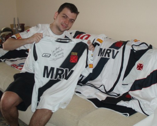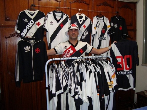 - As que tenho maior apego são a de 2004 com patrocínio de um canal por assinatura, que o Vasco usou apenas contra o Santos, na última rodada do Campeonato Brasileiro. Apesar do time ter jogado com a preta, e a minha ser branca, tenho um grande sentimento por ela. E também um modelo de 2009 usado pelo Philippe Coutinho no jogo Vasco x Bragantino. O garoto será um craque.