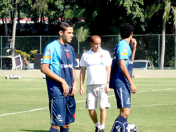 NETVASCO - 14/08/2009 - SEX - 11:06 - Alan Kardec já treina com o resto do elenco em São PauloAlan Kardec (à esquerda) já se integrou à delegação cruzmaltina na Academia de Futebol do Palmeiras. O jogador foi chamado pelo técnico Dorival Júnior, porque Aloísio viajou na noite desta quinta para Maceió para o enterro do seu irmão mais velho, que faleceu de um mal súbito. Alan, como aconteceria com o próprio Aloísio, deve ficar no banco de reservas no jogo deste sábado, contra a Lusa, pela Série B
