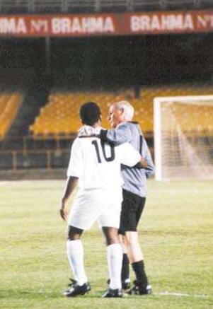 Pelé e Andrada no Maracanã em 1999, nos 30 anos do milésimo gol