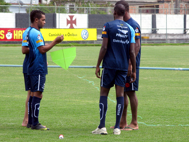 Observado pelos companheiros, Alex Teixeira começou a levantar a pipa aproveitando o vento do Vasco-Barra. O meia lembrou da infância em Duque de Caxias, local que morava antes de virar jogador profissional e se mudar para o Rio de Janeiro.
