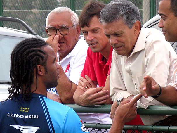 NETVASCO - 19/08/2009 - QUA - 12:36 - Carlos Alberto conversou com Nelsinho Rosa durante o treino desta 4ªO ex-treinador Nelsinho Rosa, campeão brasileiro com o Vasco em 1989, apareceu nesta quarta-feira no Vasco-Barra para acompanhar o jogo-treino contra o Sendas. Durante a atividade, ele ficou conversando com o meia Carlos Alberto. Nelsinho trabalha nas divisões de base do clube.