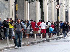 O estudante Marcos Breta chegou ao estádio às 9h30m. Enfrentou a chuva que caia no Rio de Janeiro e não se arrependeu. Às 10h05m deixava a fila com dois ingressos na mão.