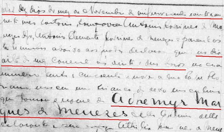 Registro de Nascimento de Adhemyr Marques de Menezes. Os trechos sublinhados acima dizem: