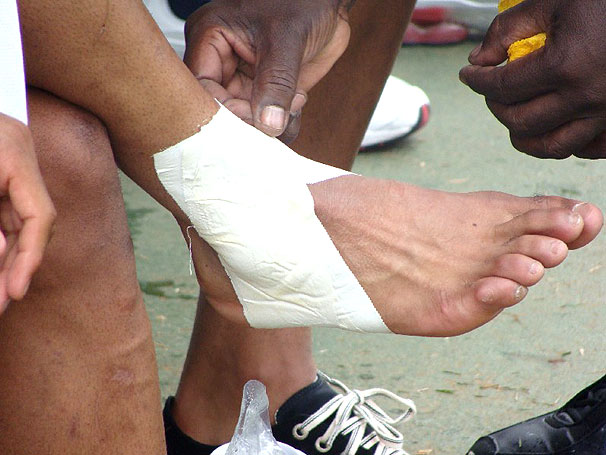 Carlos Alberto usa proteção de esparadrapo para suportar problema no tornozelo direito