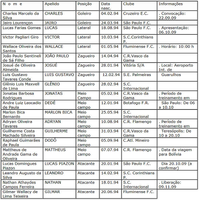 Fonte: Site da CBF índice | envie por e-mail | espalhe Anterior: 20:31 - Reservas goleiam Petroclube Lobito, de Angola, em jogo-treino: 5 a 0 Próxima: 20:43 - Com 2 vascaínos, Seleção Sub-20 viaja para o Mundial do Egito |