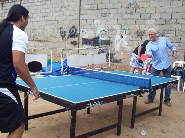 Presidente Roberto Dinamite jogando tênis de mesa