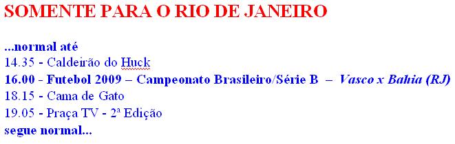 NETVASCO - 22/10/2009 - QUI - 22:59 - TV Globo e RedeTV anunciam transmissão de Vasco x BahiaApesar do jogo Vasco x Bahia ser realizado no Rio de Janeiro (sábado, 24/10, 16h10min, Maracanã), tanto a TV Globo quanto a RedeTV anunciam em seus sites que transmitirão a partida ao vivo.