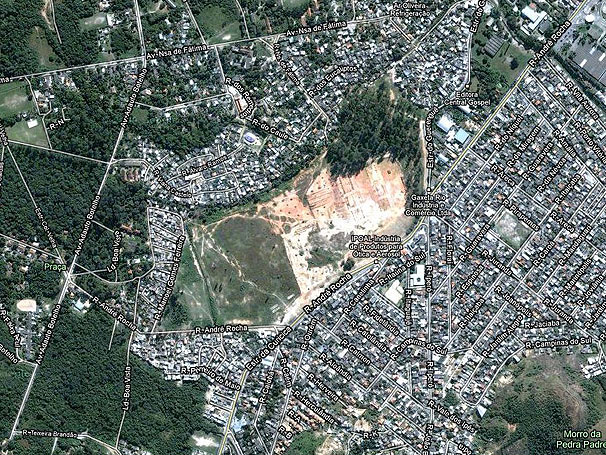 O terreno pretendido pela diretoria do Vasco está no centro do mapa e fica localizado na Rua André Rocha, na Taquara, em Jacarepaguá