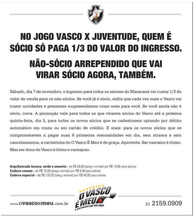 NETVASCO - 03/11/2009 - TER - 17:37 - Confira anúncio sobre a promoção de ingressos para sócios do Vasco
