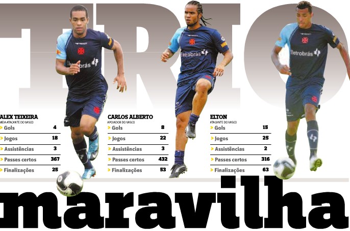 NETVASCO - 06/11/2009 - SEX - 09:04 - Vasco invicto quando jogam Alex Teixeira, Carlos Alberto e Élton juntosO Vasco tem nos jogadores mais badalados do elenco o seu grande trunfo para garantir a classificação para a Série A amanhã, contra o Juventude. Com Alex Teixeira, Carlos Alberto e Elton em campo, o Cruzmaltino ainda não foi derrotado na Segunda Divisão.