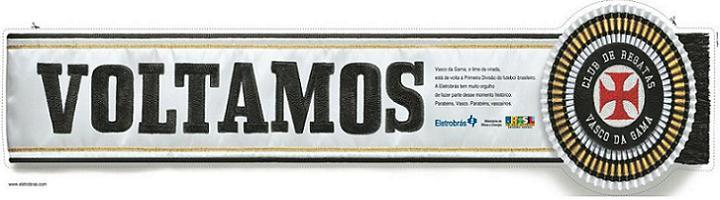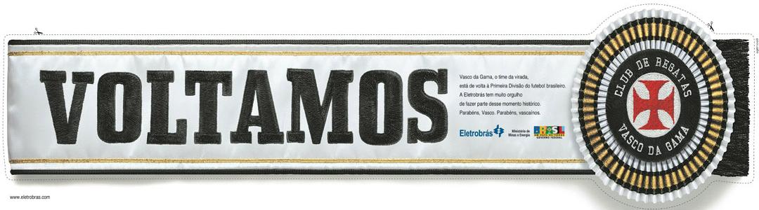 "Vasco da Gama, o time da virada, está de volta à Primeira Divisão do futebol brasileiro. A Eletrobrás tem muito orgulho de fazer parte desse momento histórico. Parabéns, Vasco. Parabéns, vascaínos."