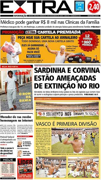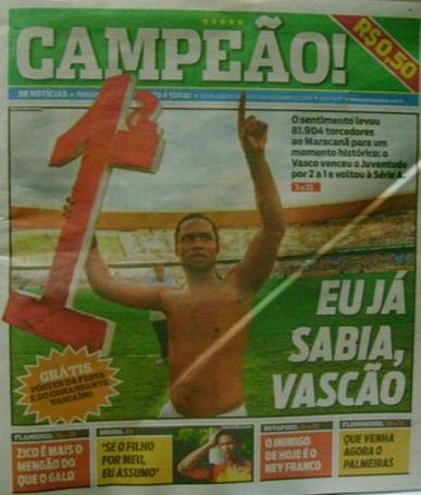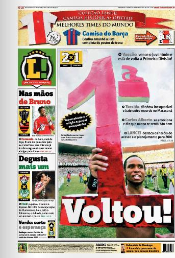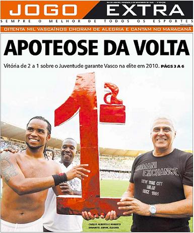 | NETVASCO - 08/11/2009 - DOM - 05:39 - Confira como a imprensa destacou a volta do Vasco para a Série A índice | envie por e-mail | espalhe Anterior: 05:36 - Dinamite: 'Para limparmos o Vasco de tudo vamos levar de 3 a 4 anos' Próxima: 05:50 - Menino que sofreu com rebaixamento agora vibra com volta à Série A |
