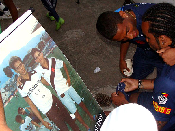 NETVASCO - 09/11/2009 - SEG - 22:44 - Torcedor paraibano resgata foto dos anos 80 com Dinamite O meia Carlos Alberto ficou impressionado com a paixão do torcedor da Paraíba pelo Vasco. Nesta segunda-feira, durante o treino do time cruzmaltino no Estádio Amigão, o jogador foi cercado por um torcedor que fez questão de mostrar a ele uma foto tirada com Roberto Dinamite em uma outra passagem do clube da Colina por Campina Grande