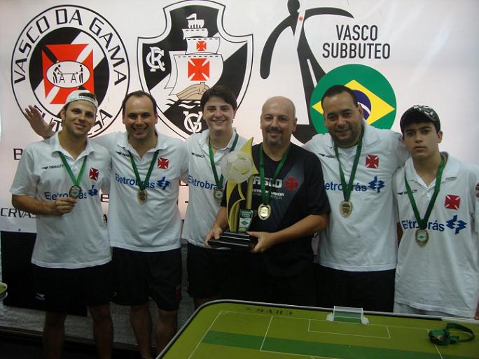 NETVASCO - 09/11/2009 - SEG - 23:02 - Futmesa: Vasco vence Estadual Pastilha pela 5ª vez em 6 anosA equipe cruzmaltina de futebol de mesa conquistou ontem (08/11) o penta-campeonato estadual interclubes da modalidade pastilha, 2004-2006-2007-2008-2009, de forma invicta, jogando em São Januário.