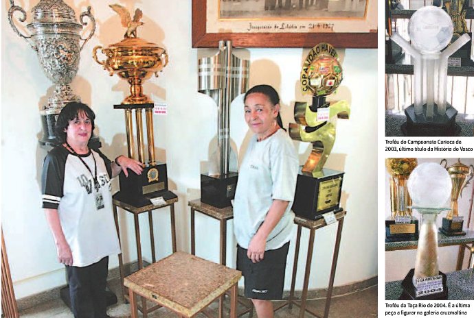 Com a companhia de dona Marli, a Xuxa, cantora e compositora nas horas vagas, que é encarregada dos serviços gerais na sala do presidente Roberto Dinamite, Angelina, de 67 anos, esbanja simpatia e carinho com a coleção de nada menos que 7.500 troféus (contando mais de 20 esportes). O último do futebol, no entanto, veio da Taça Rio de 2004.