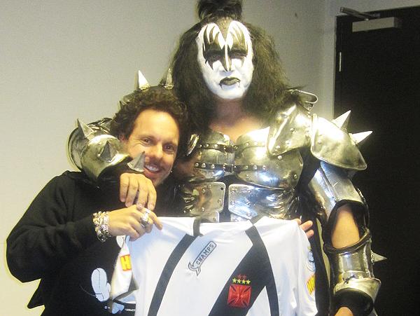 A comemoração pelo retorno do Vasco à Série A do Campeonato Brasileiro não tem fronteiras. Quem também celebrou o acesso foi o lendário vocalista do Kiss, Gene Simmons. Ele recebeu uma camisa cruzmaltina de presente do empresário brasileiro José Nilson durante uma apresentação na cidade norte-americana de Mineápolis.