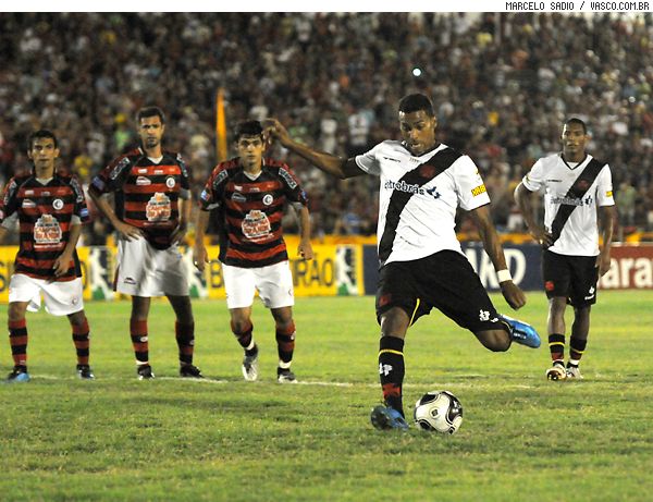 Aos 32 minutos, a situação melhoria para os cariocas. Após cruzamento na área, o zagueiro Vilson correu para dominar a bola e foi derrubado por Buick. Pênalti marcado pelo árbitro apesar das reclamações. Elton cobrou bem e deslocou o goleiro Fabiano. Vasco 1 a 0. Foi o 16º gol do atacante na Série B, que briga pela artilharia com Rafael Coelho.