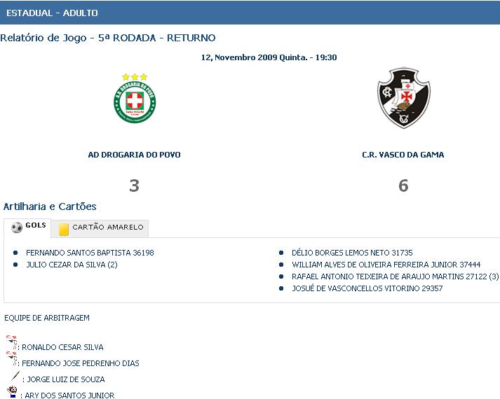 Fonte: NETVASCO (texto), Site da FFSERJ (ficha) índice | envie por e-mail | espalhe Anterior: 18:22 - Maracanã é confirmado como palco dos clássicos do Estadual 2010 Próxima: 19:54 - Confira vídeo da chegada do Vasco ao Maracanã |