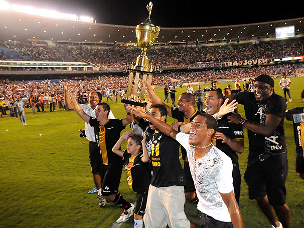 NETVASCO - 13/11/2009 - SEX - 23:43 - Jogadores comemoram título com taça improvisadaCampeão que se preza precisa de uma taça. E mesmo sem a oficial, a ser entregue pela Confederação Brasileira de Futebol (CBF) em cerimônia que acontecerá dia 7 de dezembro, o Vasco levou a campo, mesmo que de forma improvisada, um troféu para comemorar o título da Série B do Campeonato Brasileiro, conquistado nesta sexta-feira, após vitória por 2 a 1 sobre o América-RN.