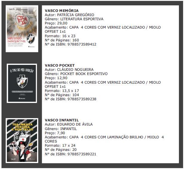 NETVASCO - 19/11/2009 - QUI - 18:10 - Editora Leitura lança kit oficial com 3 livros sobre o VascoNo momento em que o Vasco retoma o caminho das glórias retornando à Série A do Campeonato Brasileiro, novos livros presenteiam sua imensa torcida, de “norte e sul deste país”. Os jogos mais importantes, os títulos, os ídolos, a fundação, a construção de São Januário, a ousadia e o pioneirismo ao quebrar preconceitos e formar o primeiro time racialmente misto. Relatos, informações, estatísticas e curiosidades sobre a história do clube não faltam. Agora, toda essa trajetória está preservada e disponível a torcedores que, apaixonados pelo futebol, carregam o mesmo sentimento pela leitura.