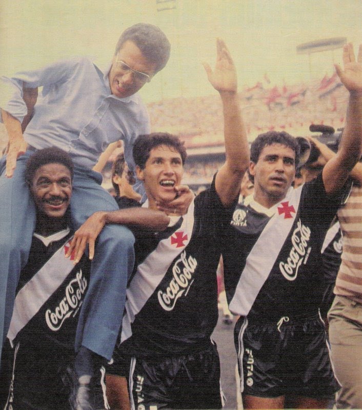 Em 1989, no Morumbi, Nelsinho é carregado por Mazinho, que está ao lado de Bismarck e Boiadeiro após a conquista do Brasileiro