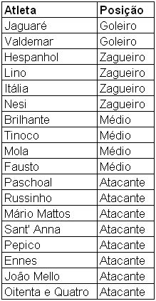 VASCO: Jaguaré, Brihante e Itália; Tinoco, Fausto e Mola; Paschoal, Oitenta e Quatro, Russinho, Mário Mattos e Sant' Anna. Técnico: Harry Welfare.